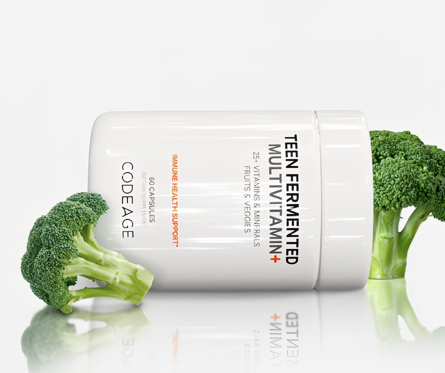 Codeage's Teens Fermented Multivitamin is designed for growing teenagers. Its fermented formula ensures easier absorption and is gentle on the stomach. Enriched with organic fruits, vegetables, and probiotics, it helps fill nutritional gaps, boost energy, and support immunity.