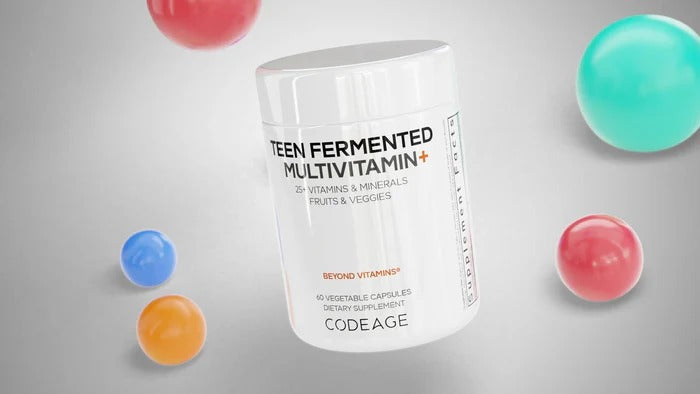 Codeage's Teens Fermented Multivitamin is designed for growing teenagers. Its fermented formula ensures easier absorption and is gentle on the stomach. Enriched with organic fruits, vegetables, and probiotics, it helps fill nutritional gaps, boost energy, and support immunity.